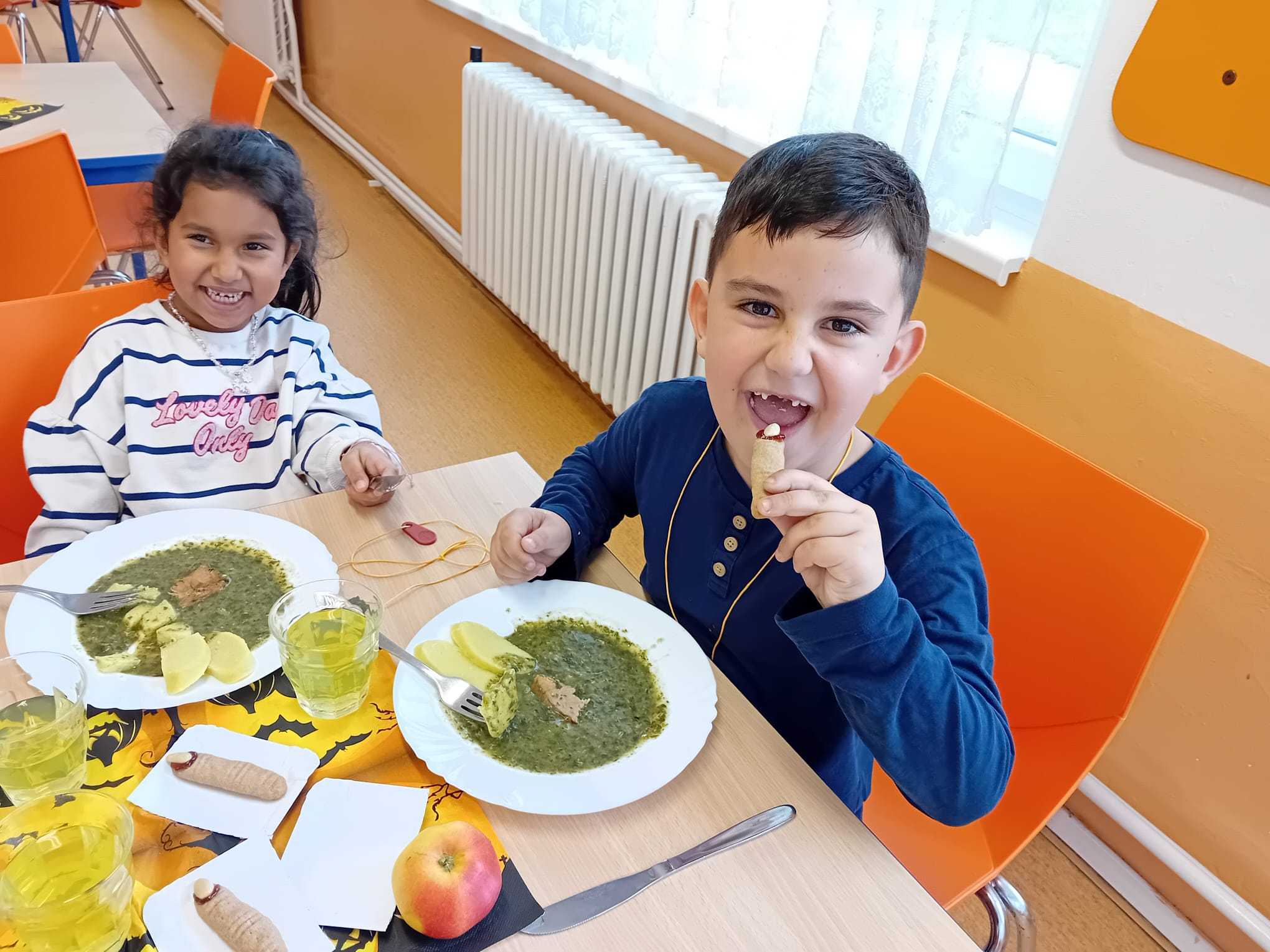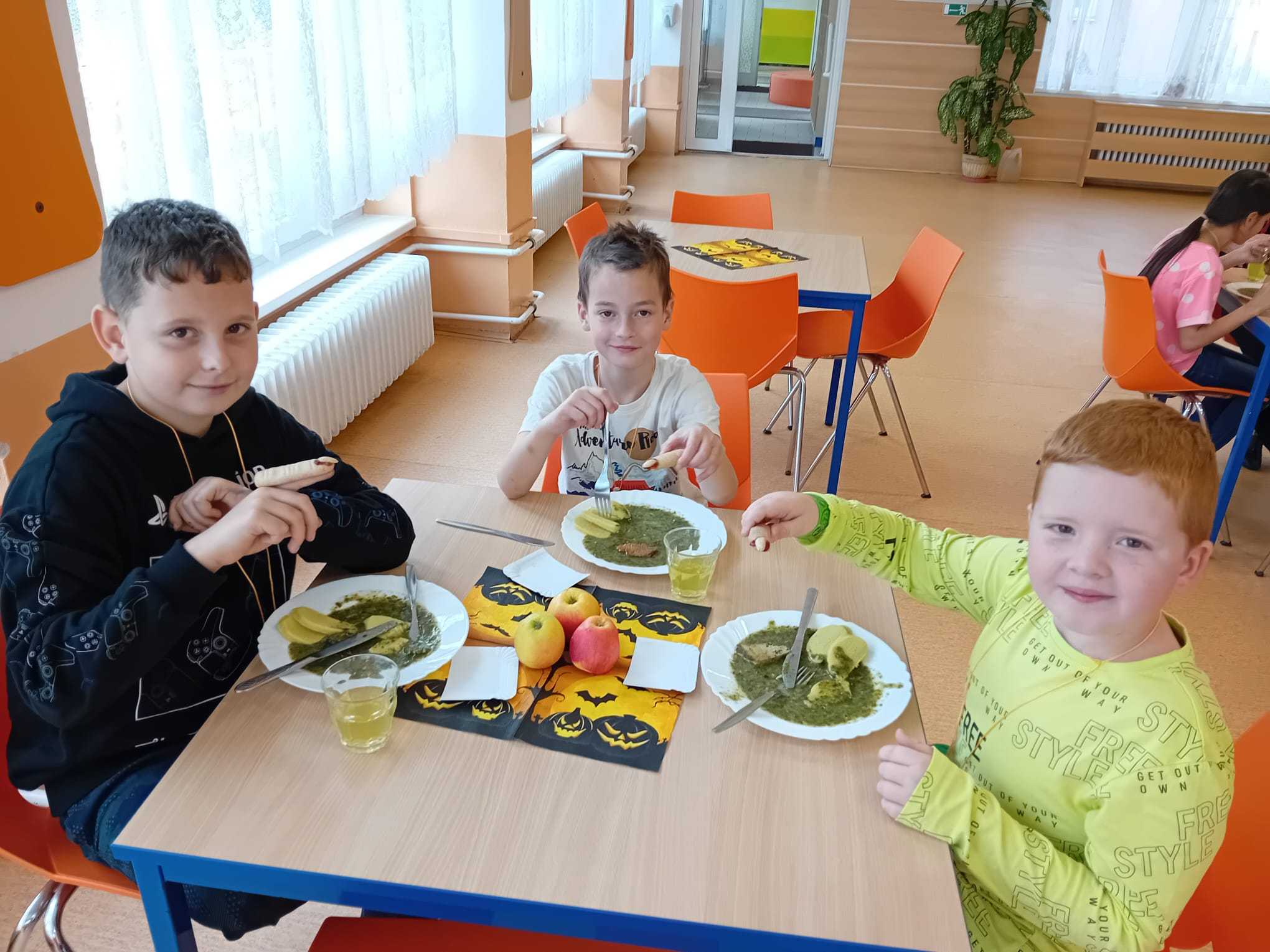 Halloweenské menu, krásná výzdoba interiéru školní jídelny, výborný oběd a vykouzlený úsměv u každého strávníka. Takový byl HALLOWEENSKÝ DEN ve školní jídelně na ZŠ Maják. Prostě duší🎃👻🎃