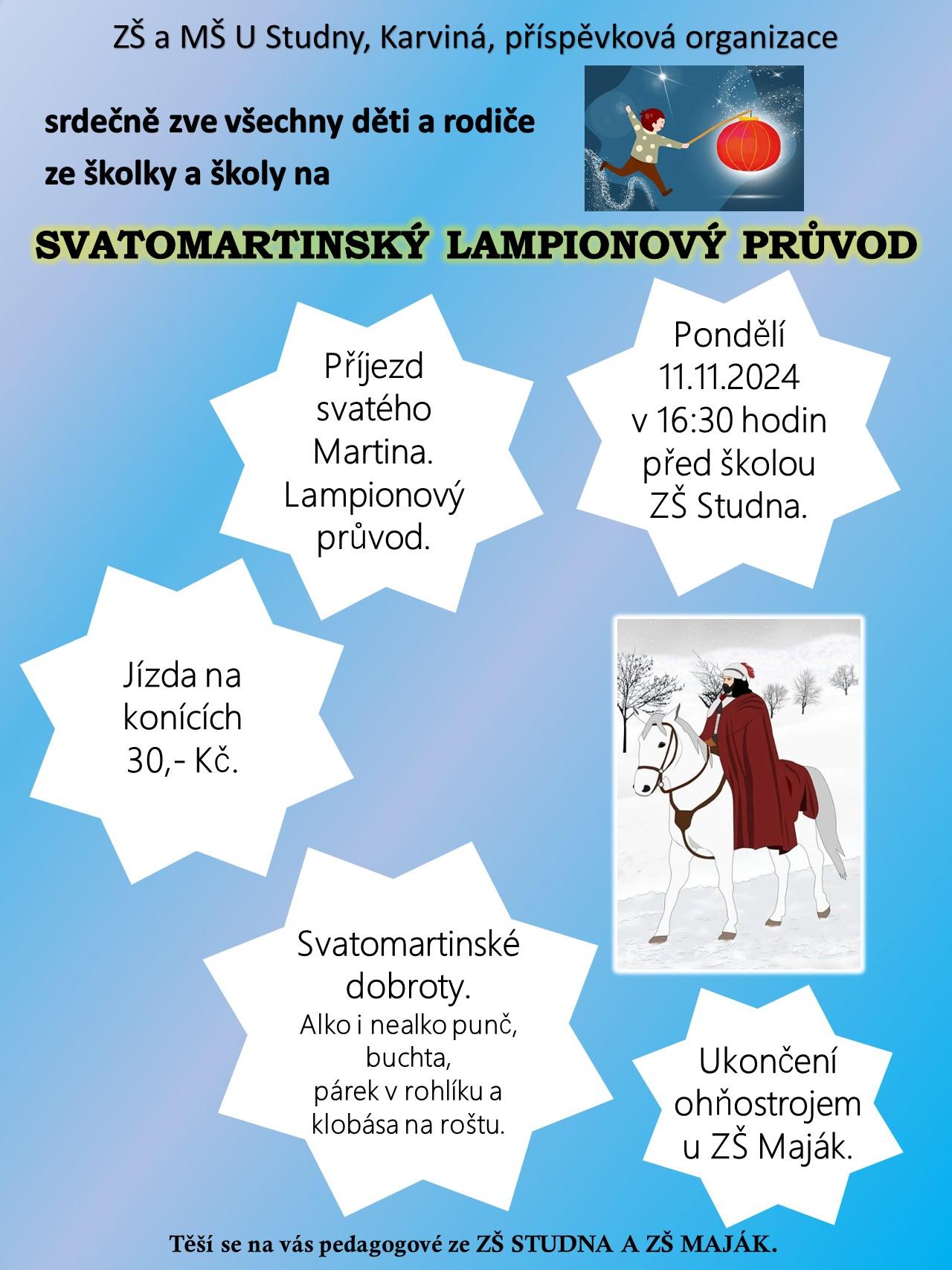 Zveme Vás na lampionový průvod, který se bude konat 11.11. v 16:30 před ZŠ U Studny.