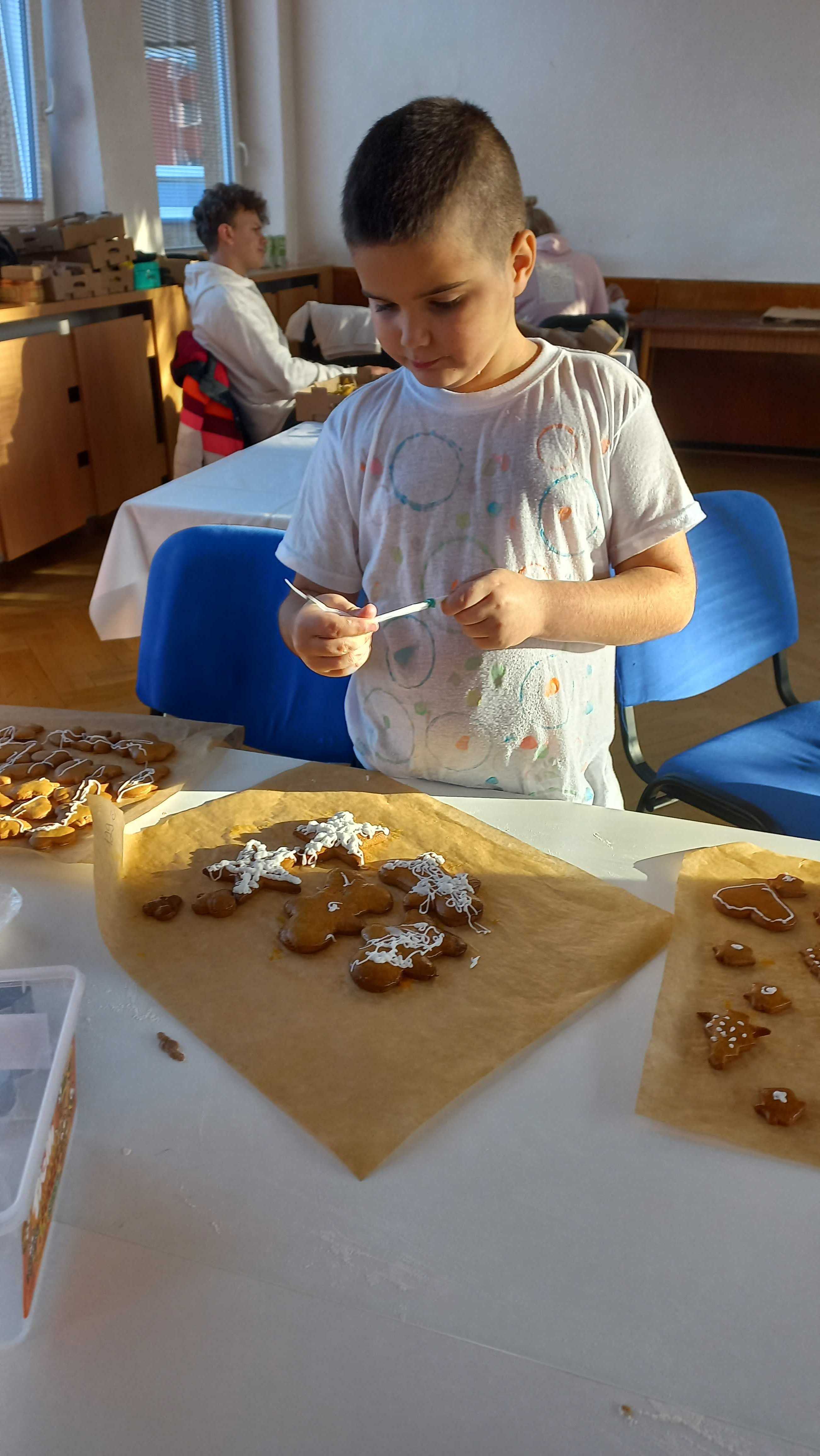 vynikající perníčky. Letos se tato akce konala v neděli 1. 12., a tak si děti 2. a 3.M první adventní