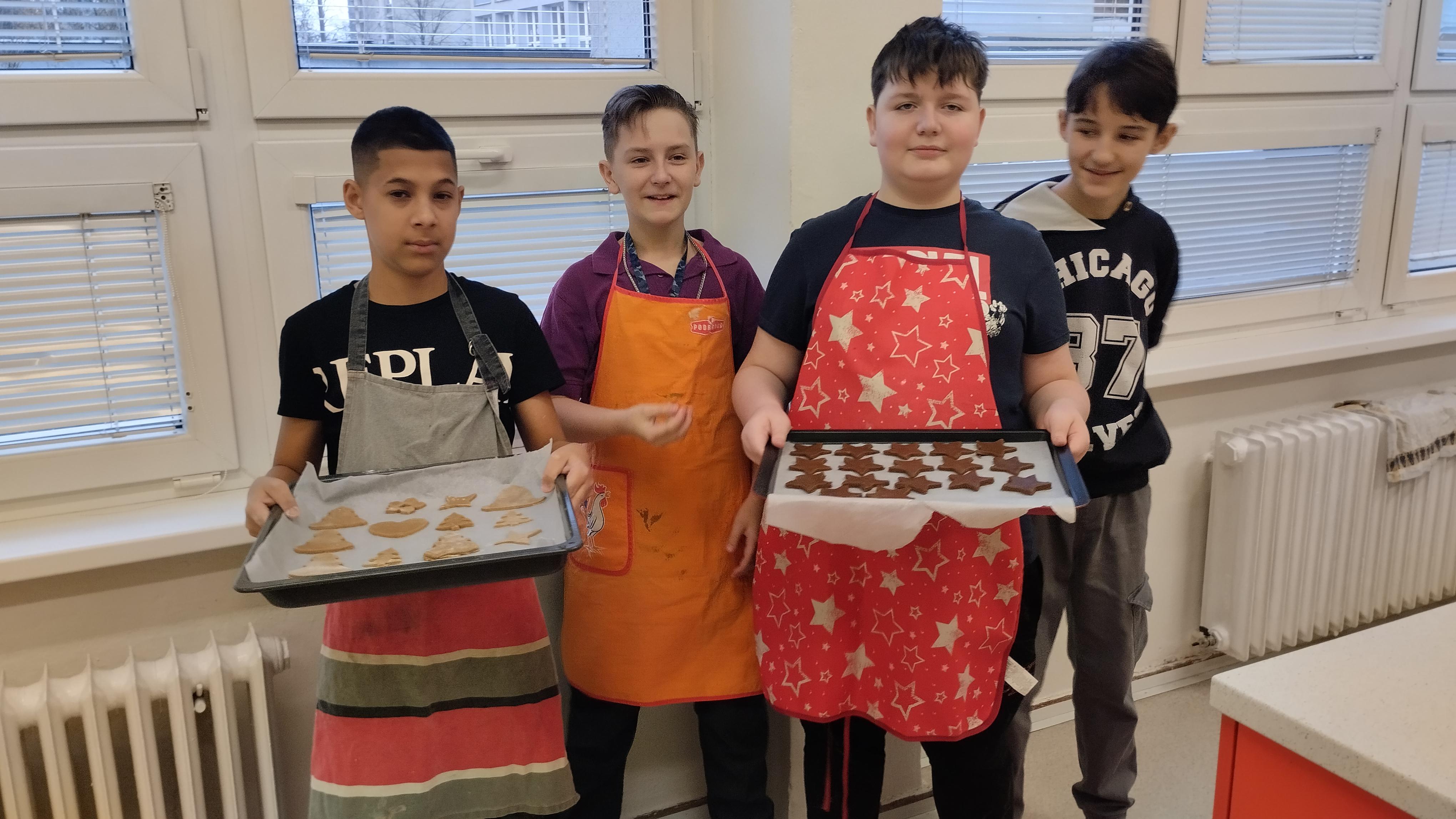 Dne 5.12.2024 v rámci třídnických hodin žáci 7.M pekli vánoční perníčky, vanilkové rohlíčky,linecké cukroví.