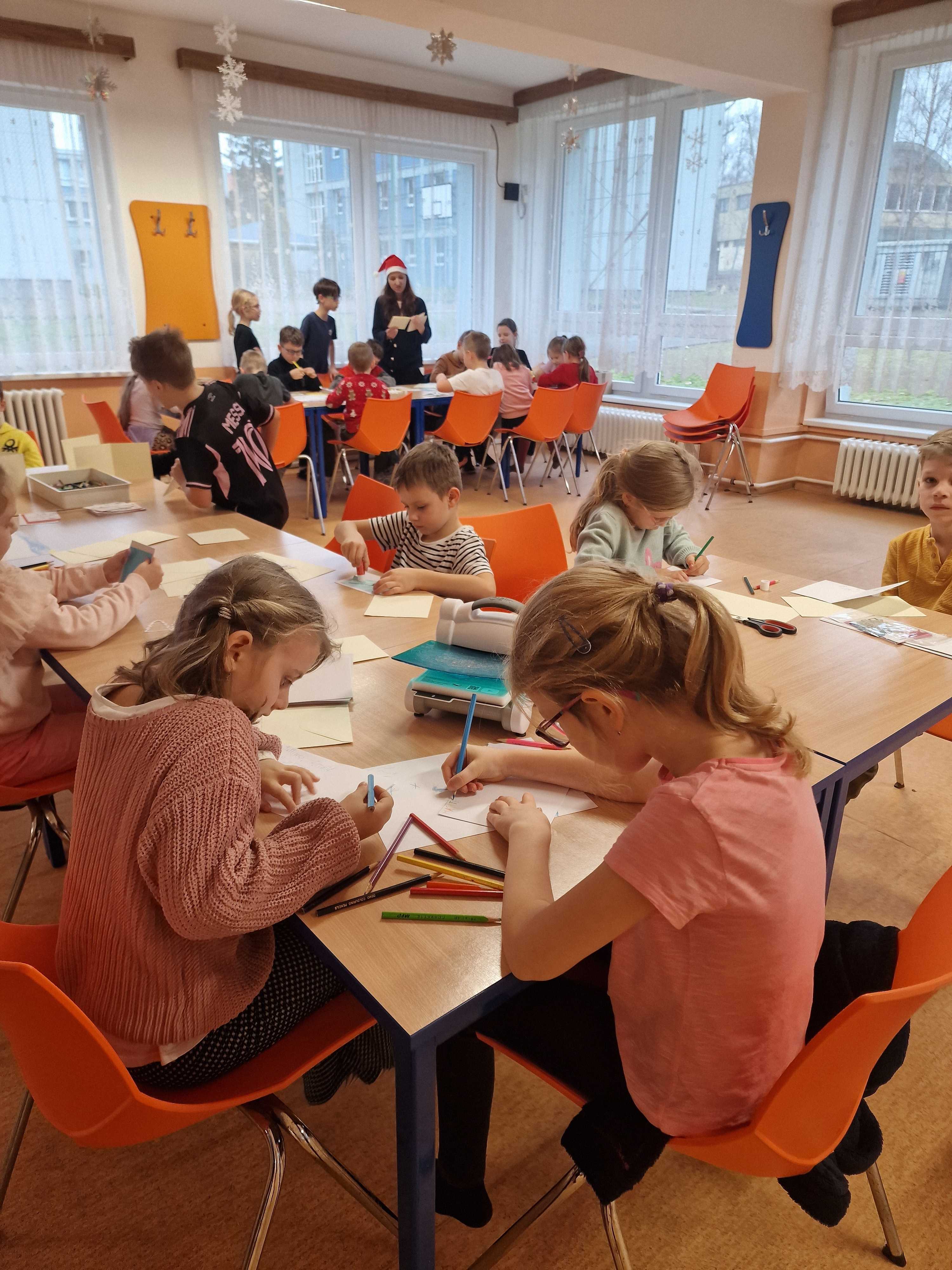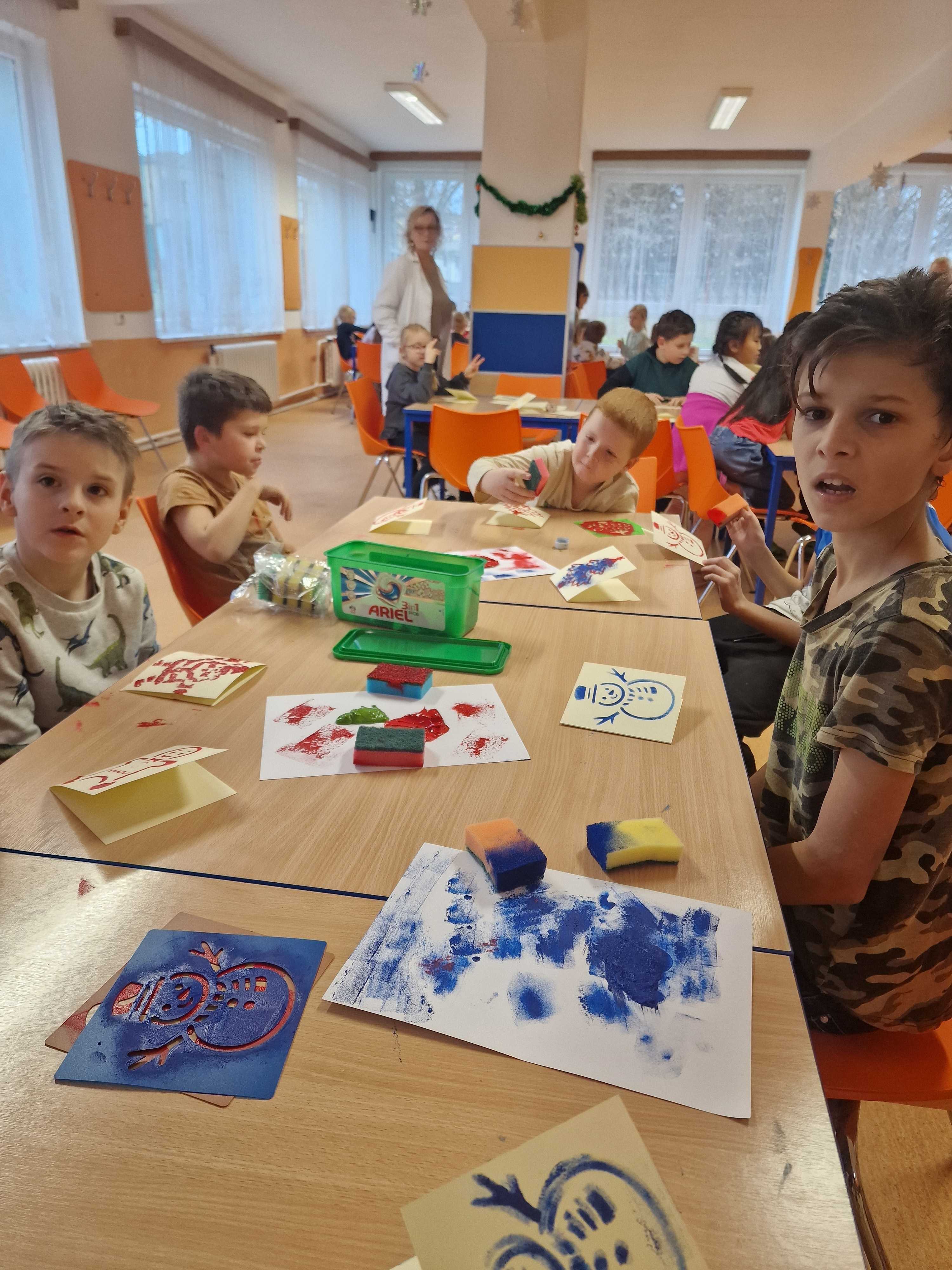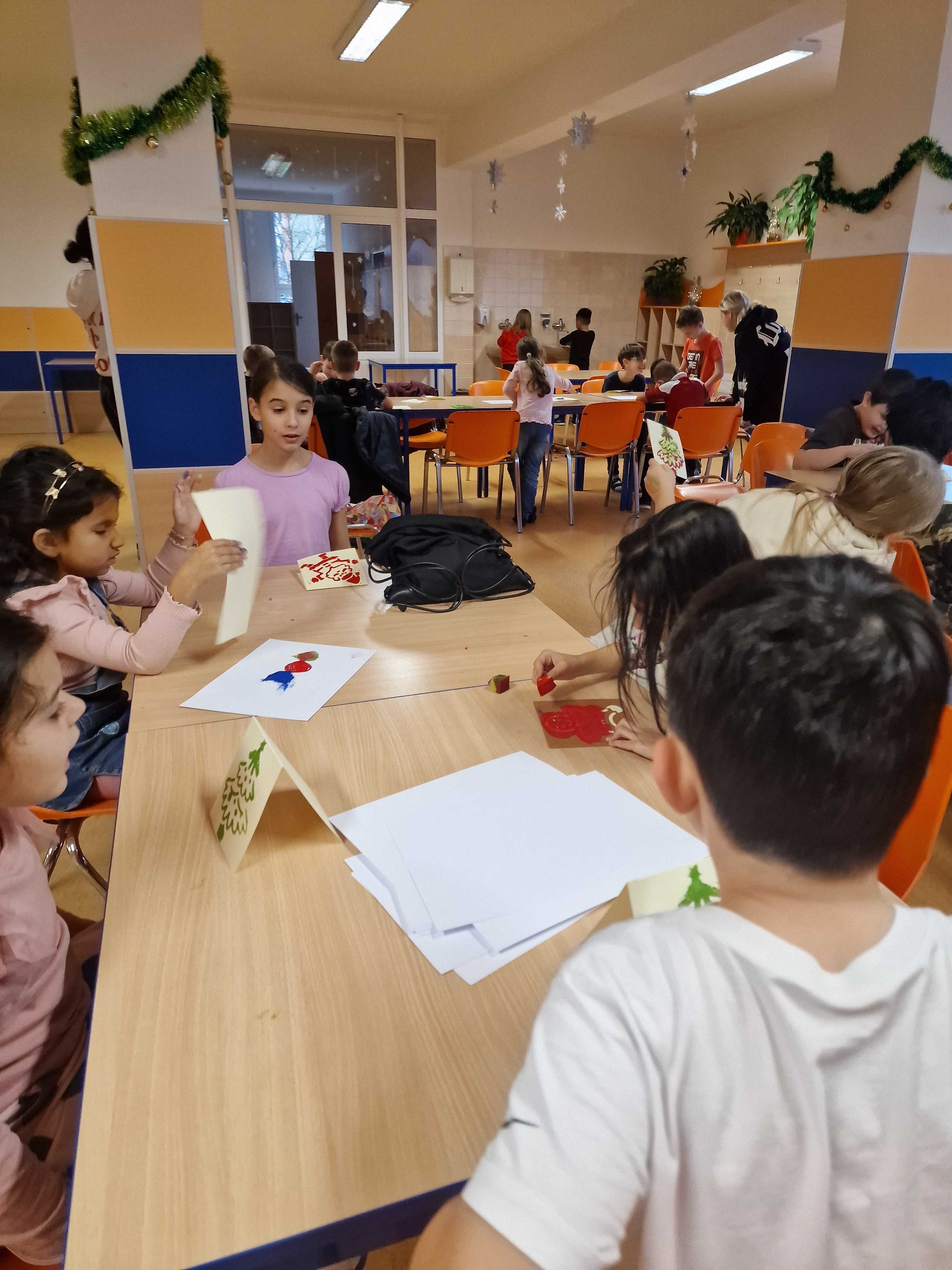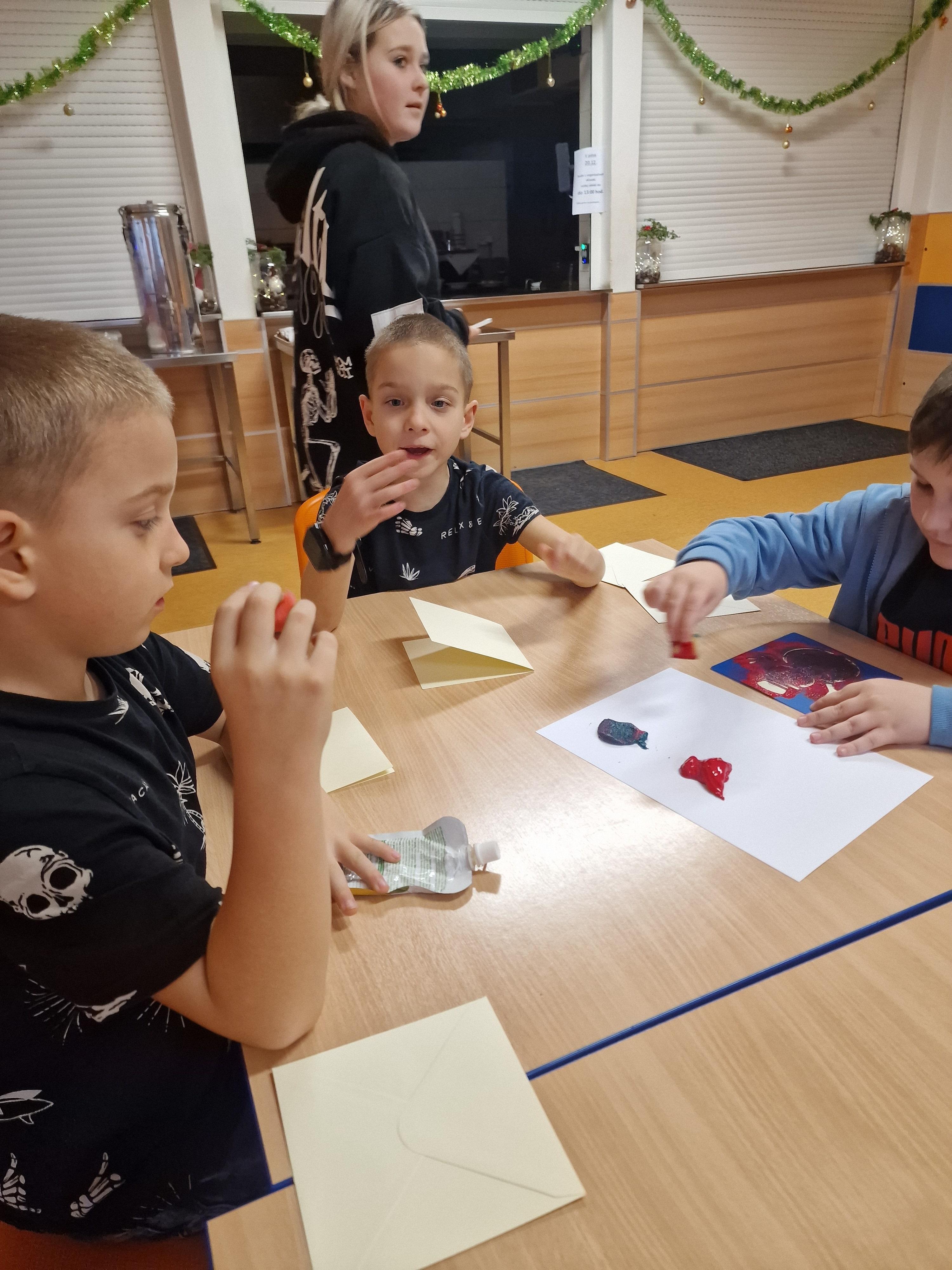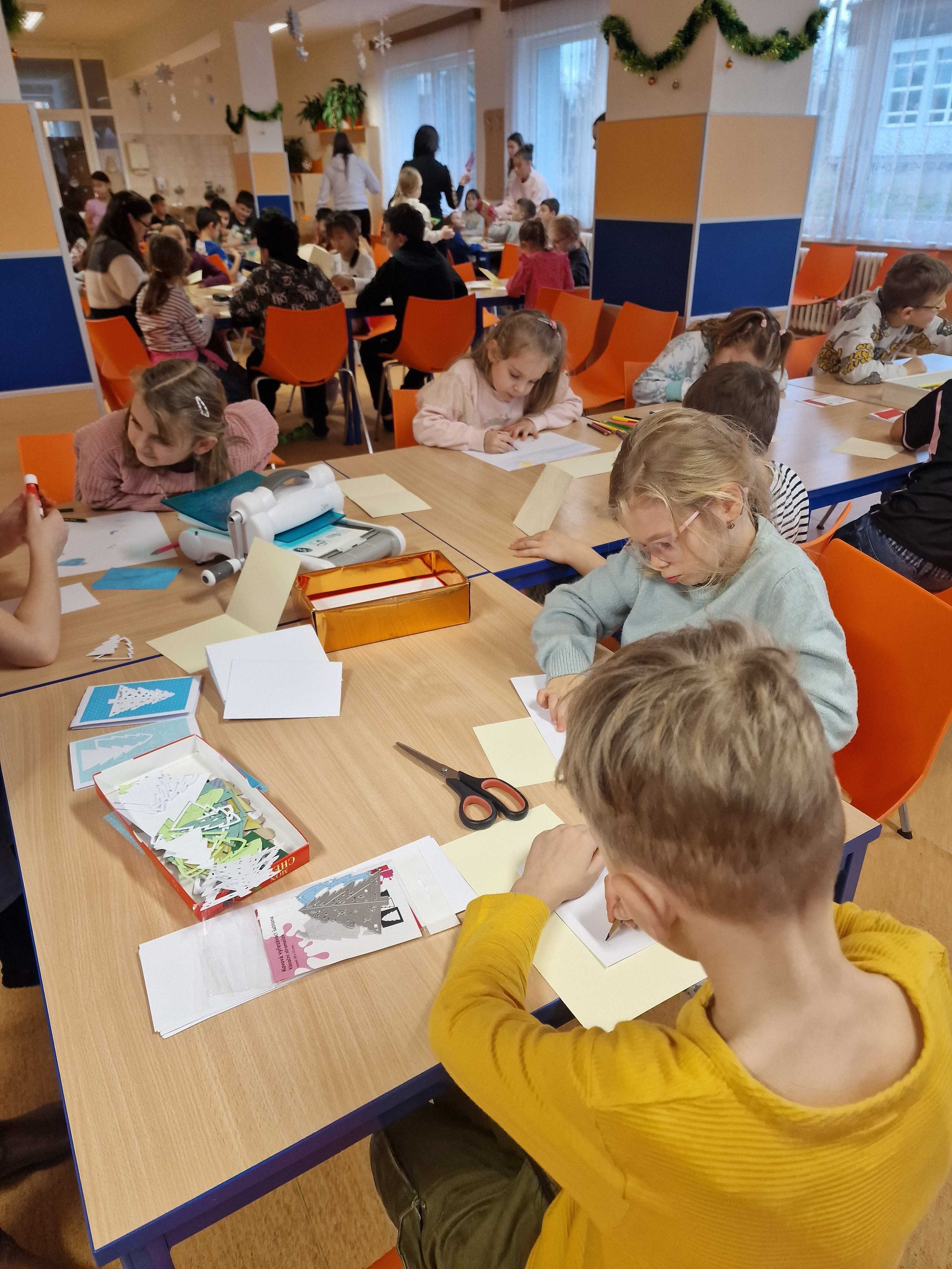 Dne 16.12. si děti společně z obou školních družin tvořily vánoční přání různými technikami ve školní jídelně školy Majakovského. Děti si přáníčka odnesly domů, snad udělají radost. Děkujeme skvělým kuchařkám za moc dobré občerstvení, které dětem přichystaly.