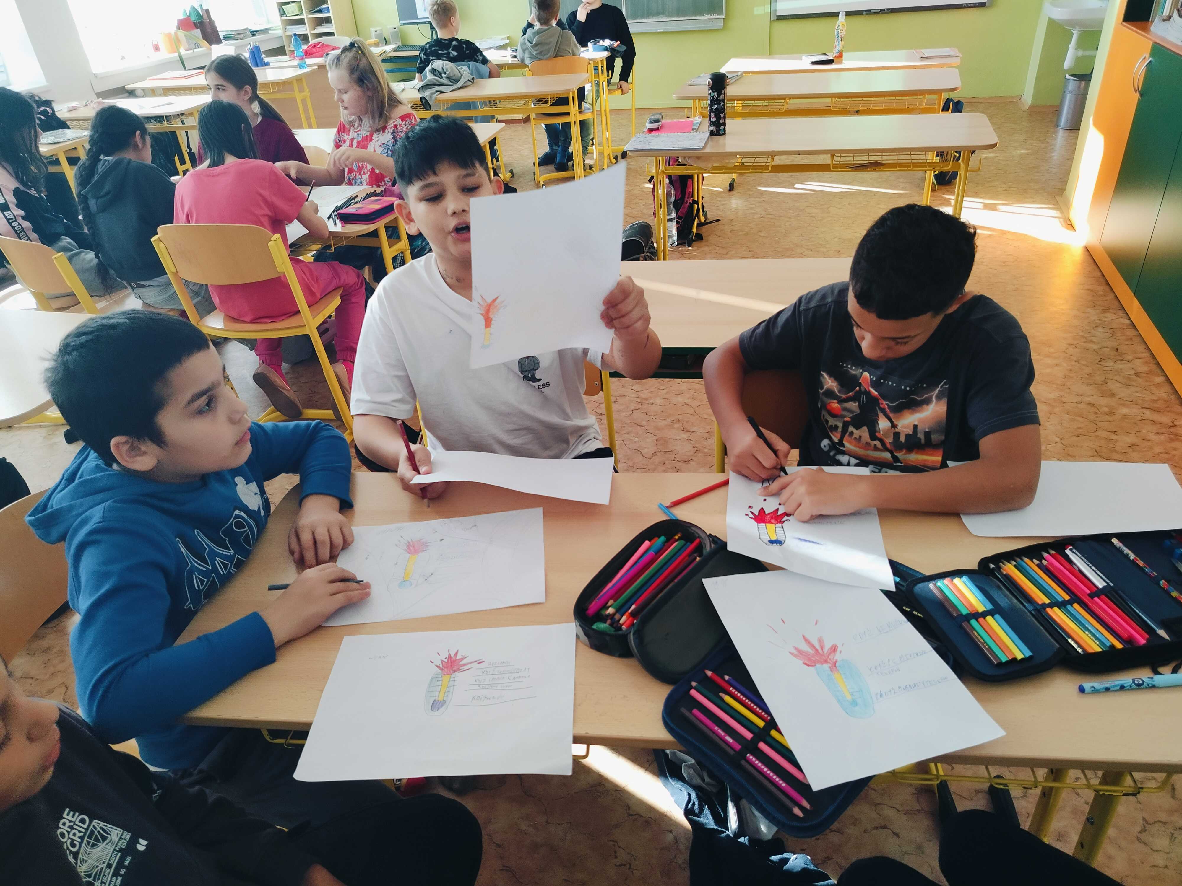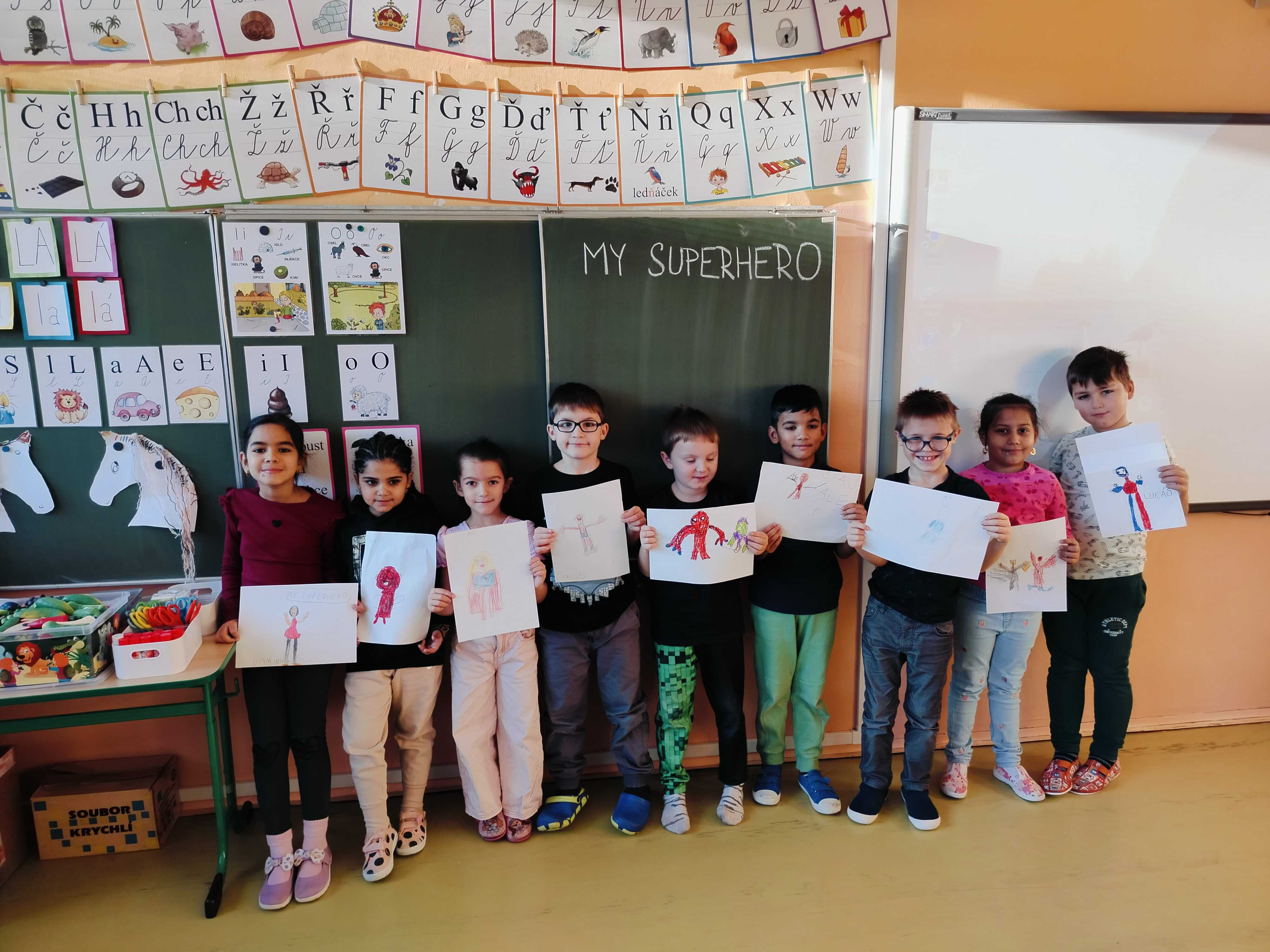 Naši žáci si v anglickém jazyce procvičovali čísla, barvy i zvířata hravou formou – pomocí her, písniček a kreativního tvoření. Zapojili se také do Bubnovačky (Týdne za dětství bez násilí). Namalovali své superhrdiny, lektvary pro dobrou náladu a pomocí teploměru emocí objevovali, co je dokáže rozzlobit a co je naopak uklidní.
