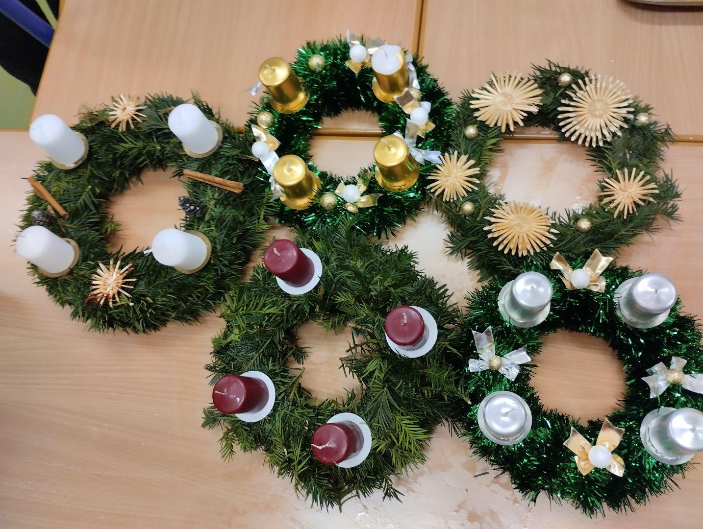 Žáci 7.A vyráběli v rámci pracovní výchovy krásné adventní věnce.