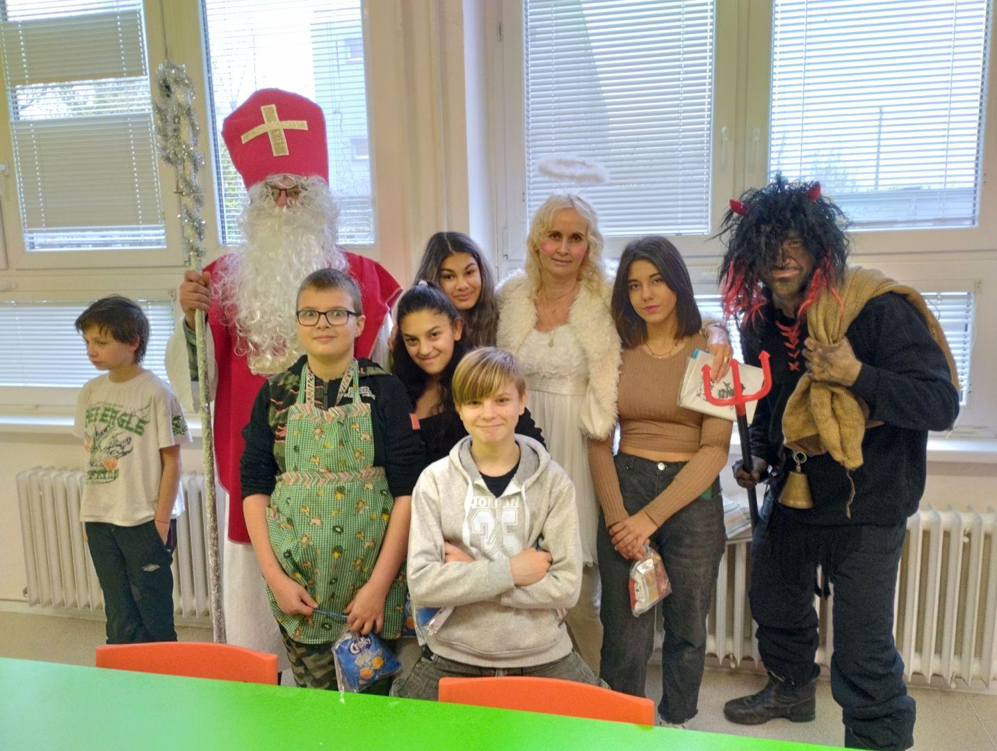 V pondělí 5.12.2022 navštívil naši školu Mikuláš, čert a anděl. Tento den jsme rovněž věnovali přípravám na VÁNOČNÍ JARMARK. Všichni žáci školy vyráběli vánoční dekorace, ozdoby, přáníčka, pekly se vánoční perníčky aj. Mikulášsko-čertovsko-andělské vánoční tvoření si děti ve škole moc užily.