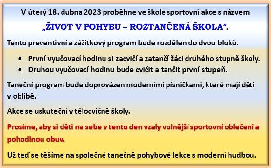 V úterý 18. dubna 2023 přijít do školy s dobrou náladou a chutí se hýbat 😊.