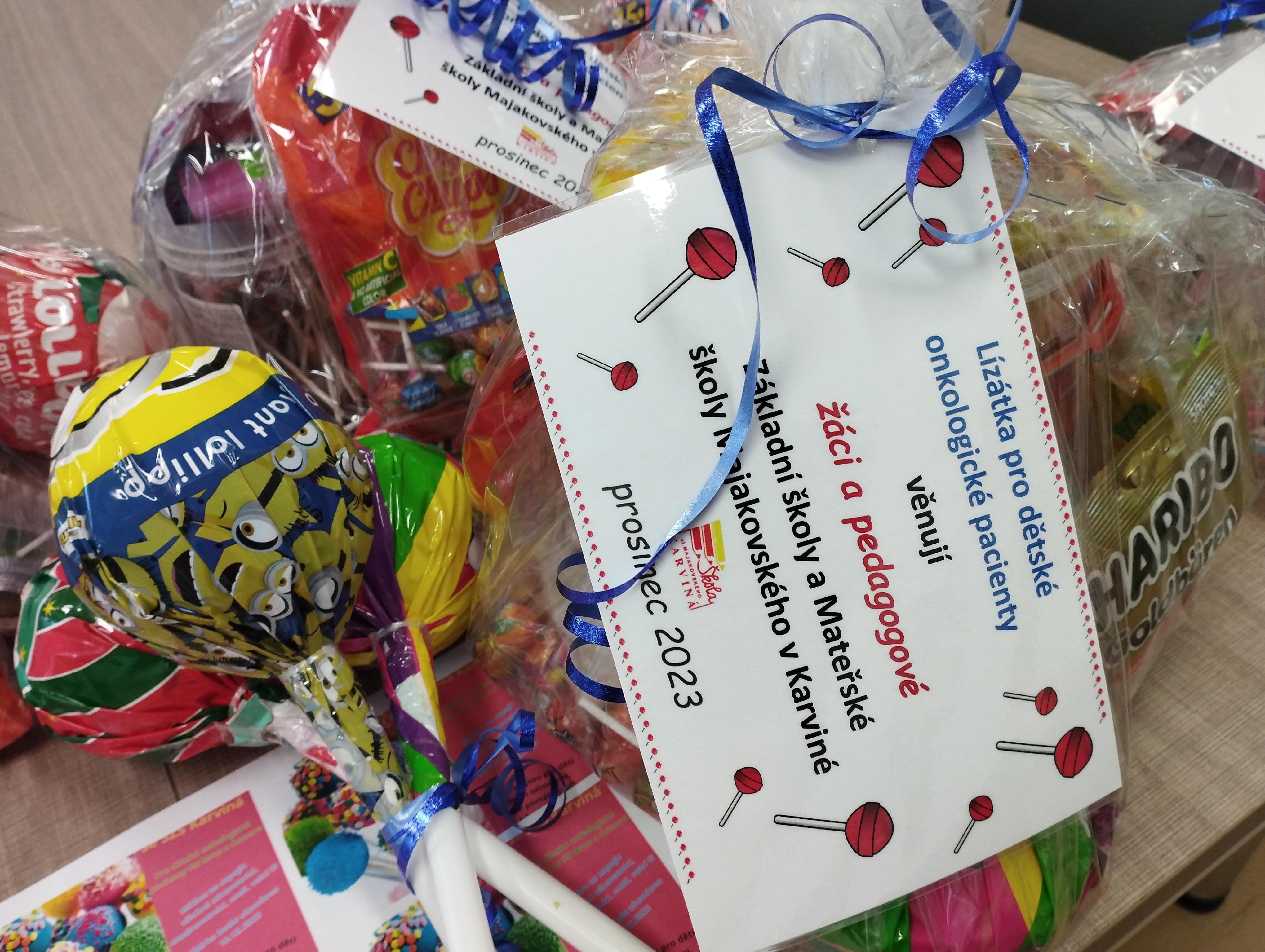 Žáci naší školy se zapojili spolu se Střední zdravotní školou v Karviné do sbírky lízátek a sladkostí pro dětské onkologické pacienty FN Brno a Ostrava. Podařilo se nám shromáždit velkou hromadu sladkostí za což všem dětem, které do sbírky přispěly, moc děkujeme a doufáme, že nemocným dětem alespoň trochu zpříjemníme pobyt v nemocnici. Hlavně jim všem přejeme brzké uzdravení.