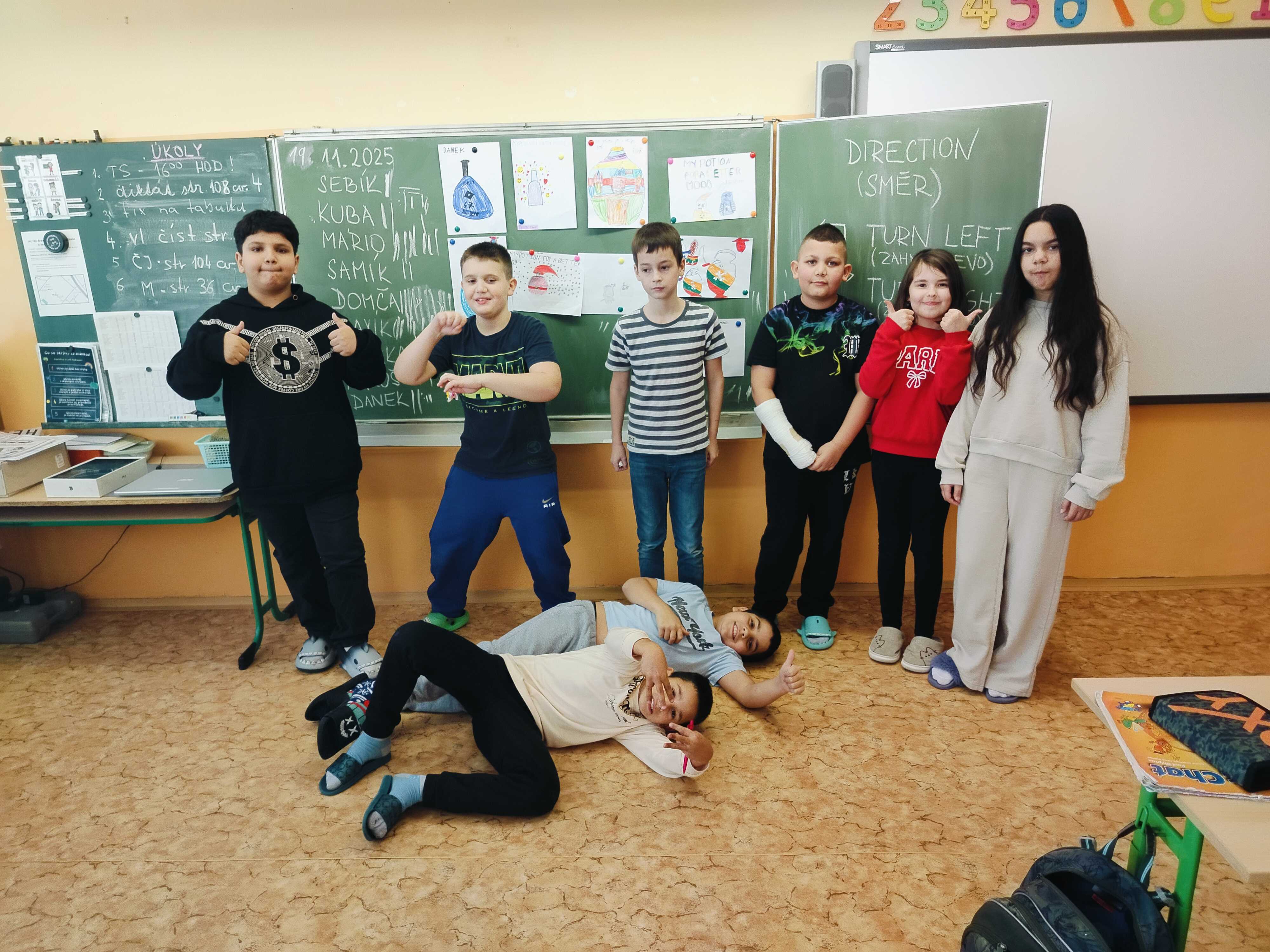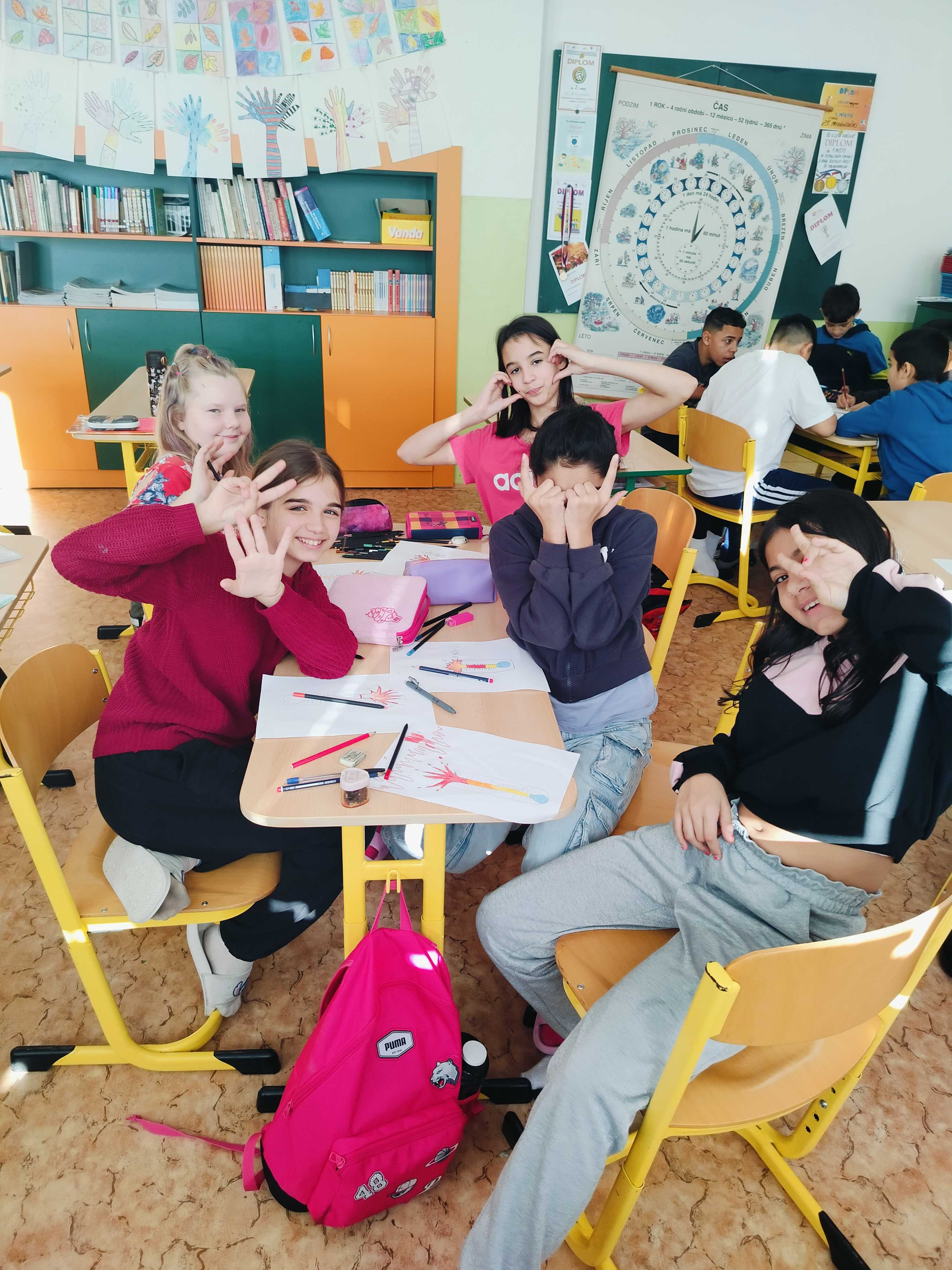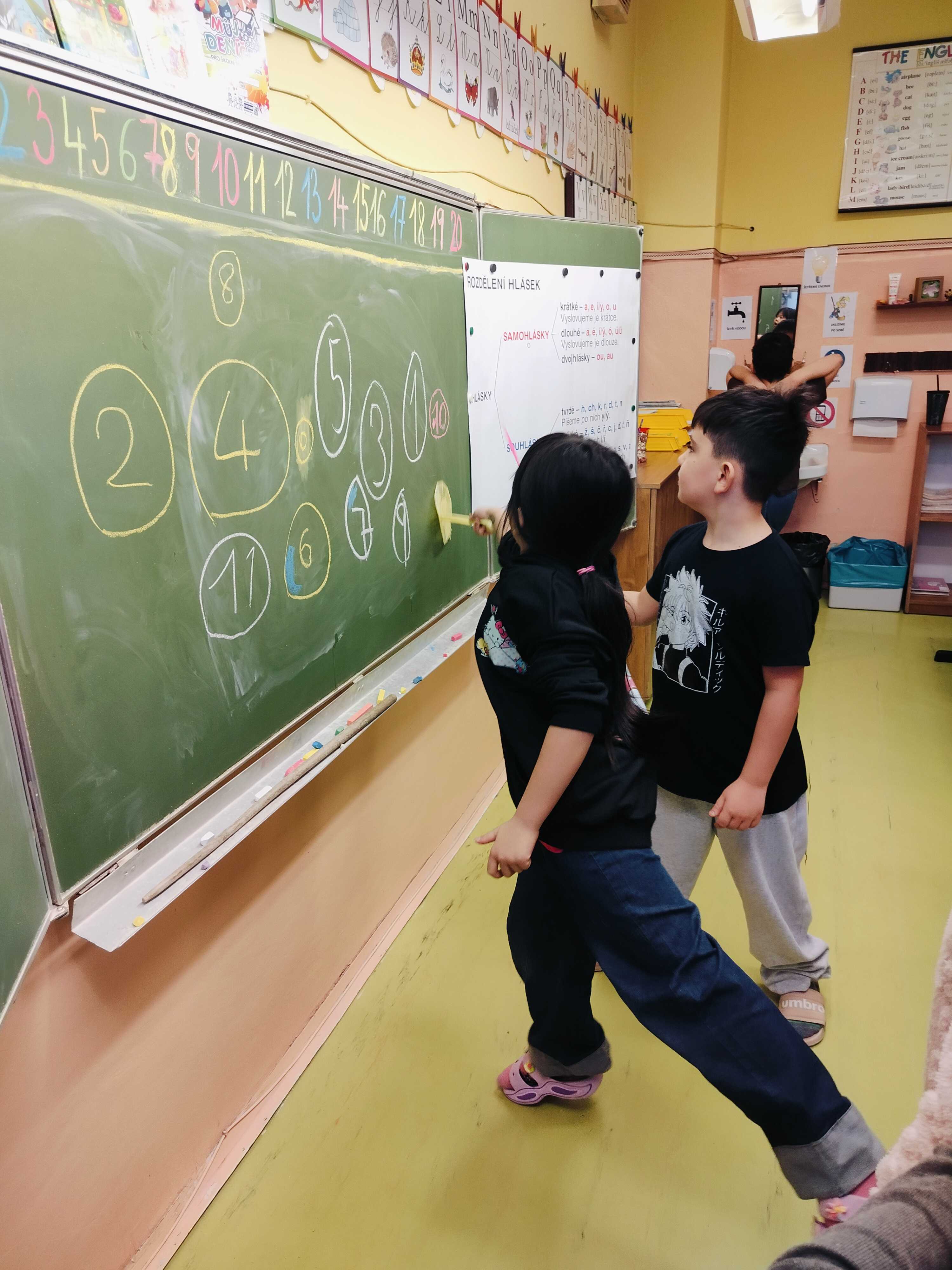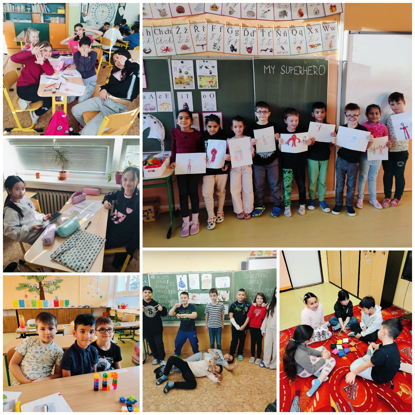 Naši žáci si v anglickém jazyce procvičovali čísla, barvy i zvířata hravou formou – pomocí her, písniček a kreativního tvoření. Zapojili se také do Bubnovačky (Týdne za dětství bez násilí). Namalovali své superhrdiny, lektvary pro dobrou náladu a pomocí teploměru emocí objevovali, co je dokáže rozzlobit a co je naopak uklidní.