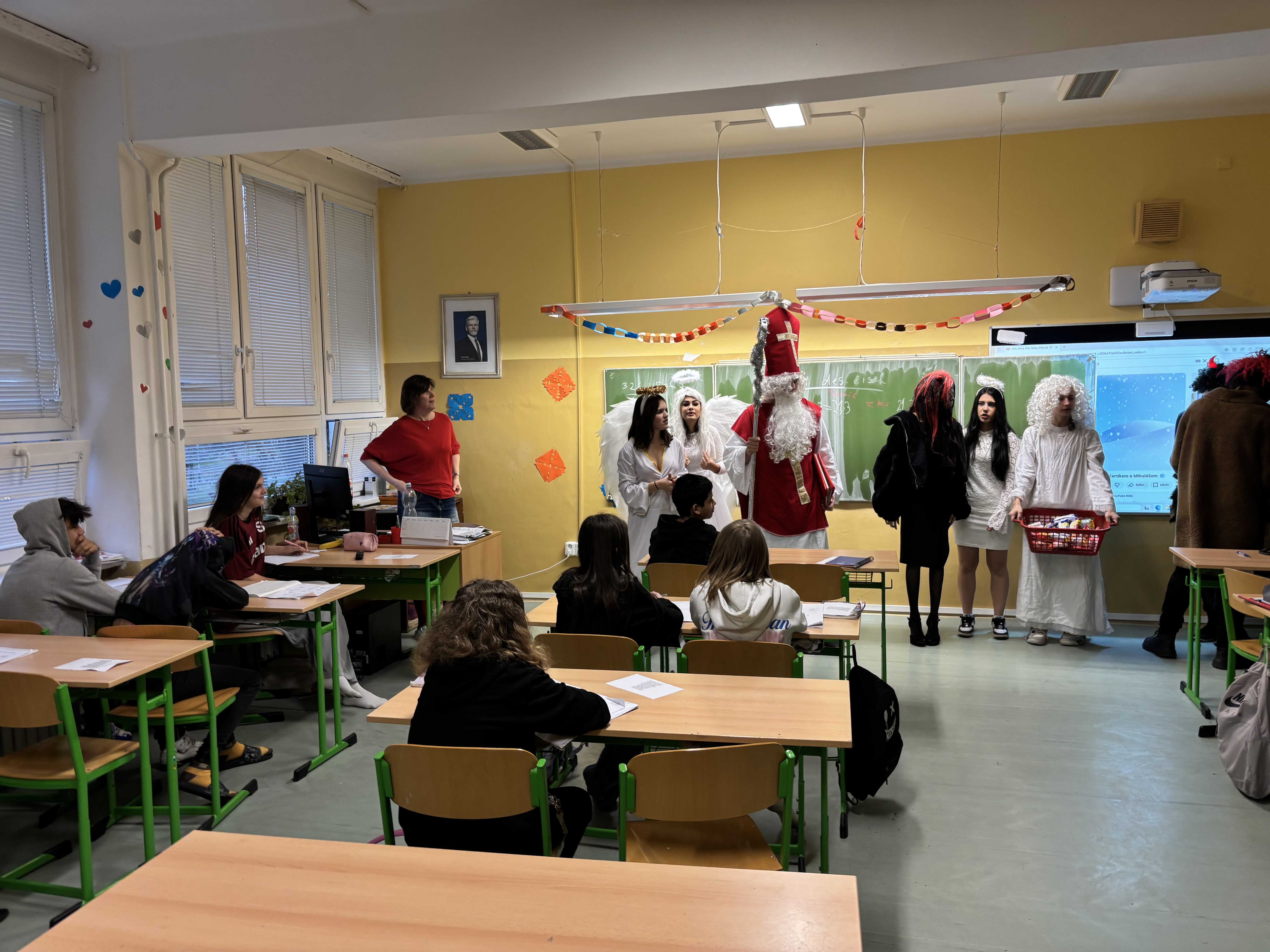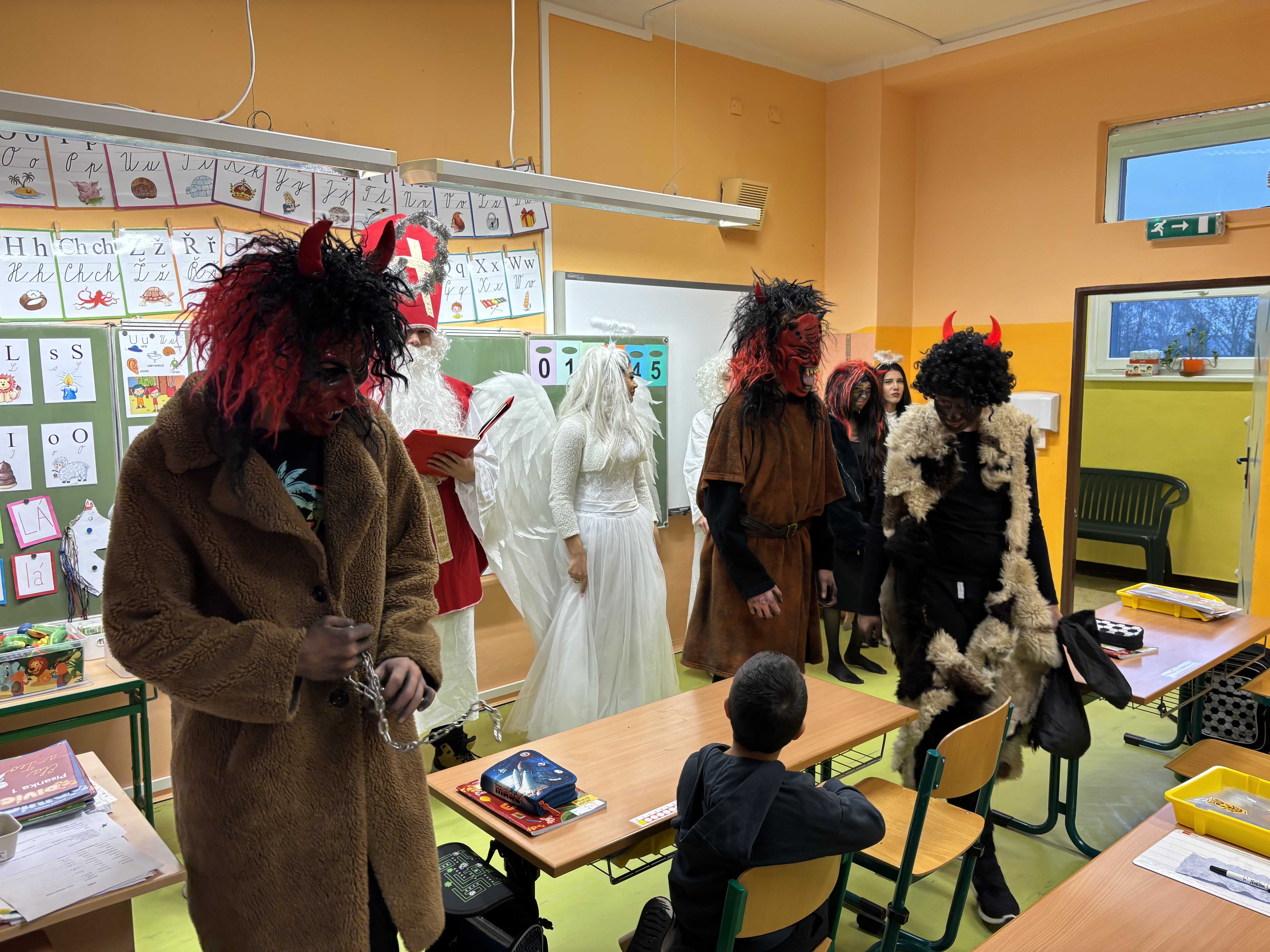 Mikuláš s anděly a čerty zavítal do všech tříd, děti potěšili, trochu postrašili a společně s nimi vytvořili příjemnou předvánoční atmosféru.