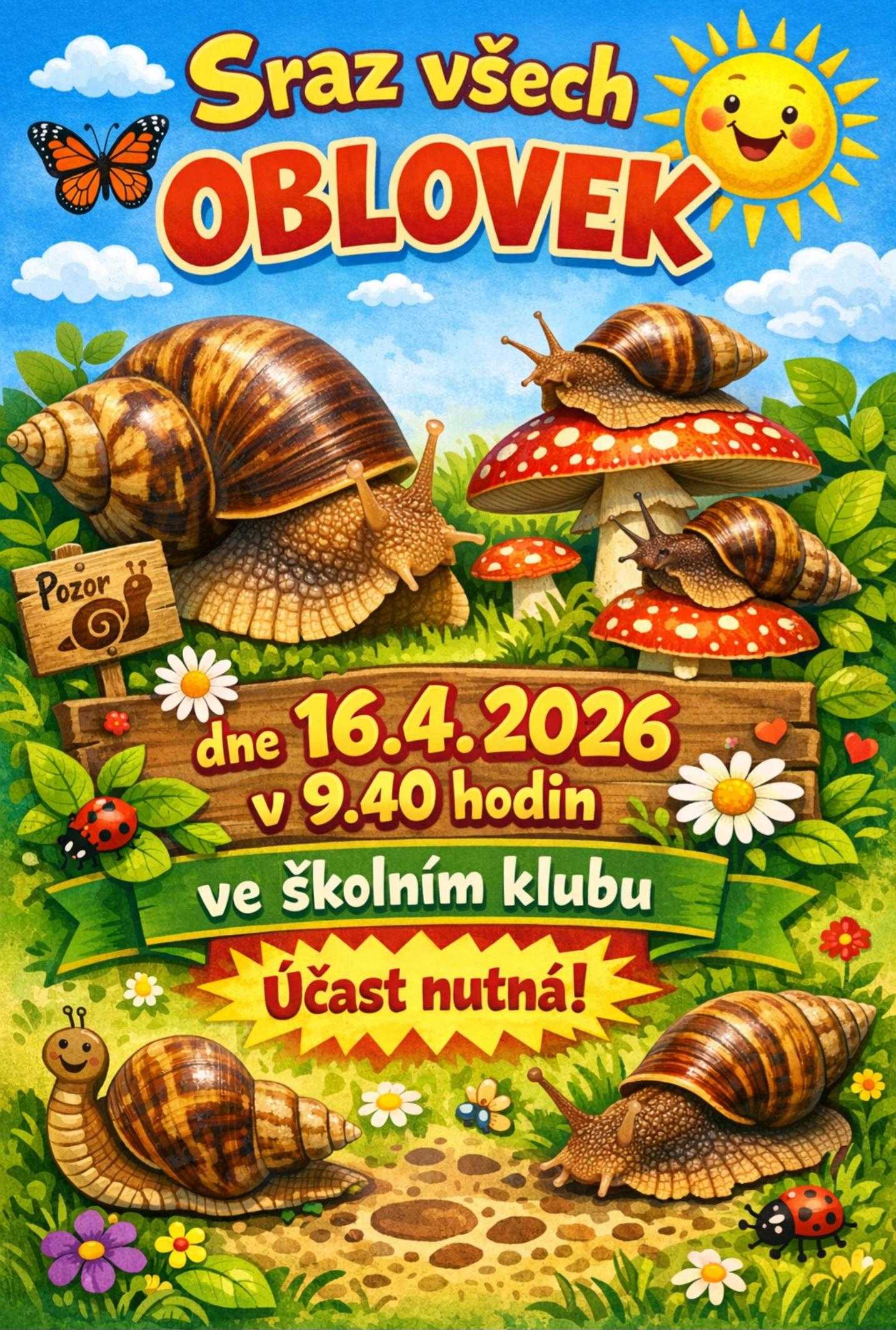 Děti se dobrovolně zúčastnily akce schůze oblovek, která se uskutečnila 16. dubna v našem školním klubu, kde bylo pro ně nachystáno občerstvení. Děti si mezi sebou vyměňovaly informace o chovu oblovek a dozvěděly se spoustu nových rad.
